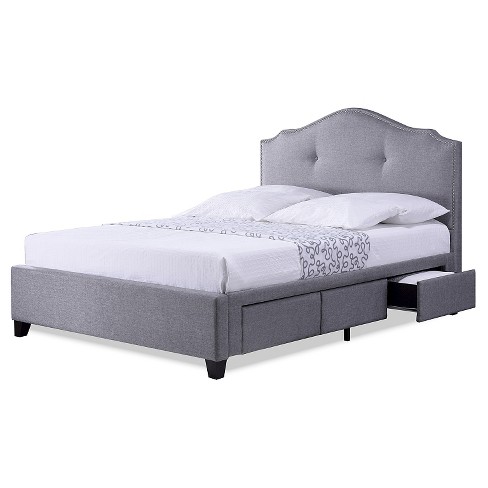 The baxton studio aubrianne storage platform bed transforms any bedroom into a tranquil space by featuring soft upholstery, button tufting, and nailhead trim. Baxton studio brandy queen storage platform bed. The bed is slightly raised on dark brown wooden legs to provide storage space underneath. Assembly is required and this platform bed features a strong particleboard base that provides mattress support and eliminates the need for a box spring. Baxton studio brandy queen storage platform bed.